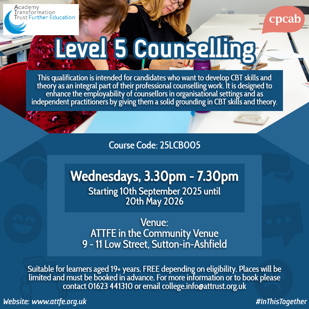 The course is classroom based and is for learners who are keen to undertake counselling in more detail and is designed to give learners the underpinning knowledge, practical skills and competencies to use counselling skills ethically and safely in different contexts and roles.