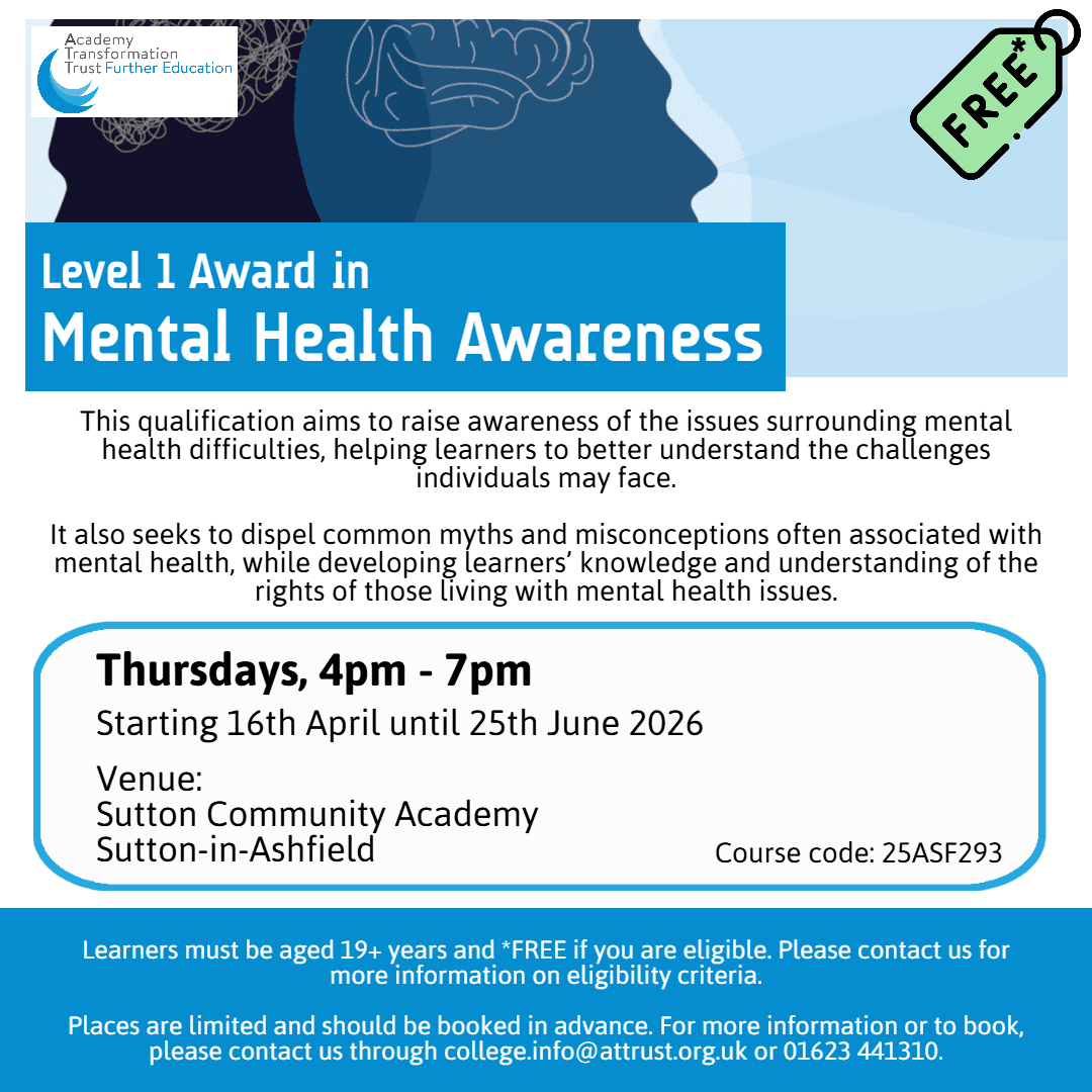 • Venue: Adult Learning, Sutton Community Academy, Sutton-in-Ashfield, NG17 1BW